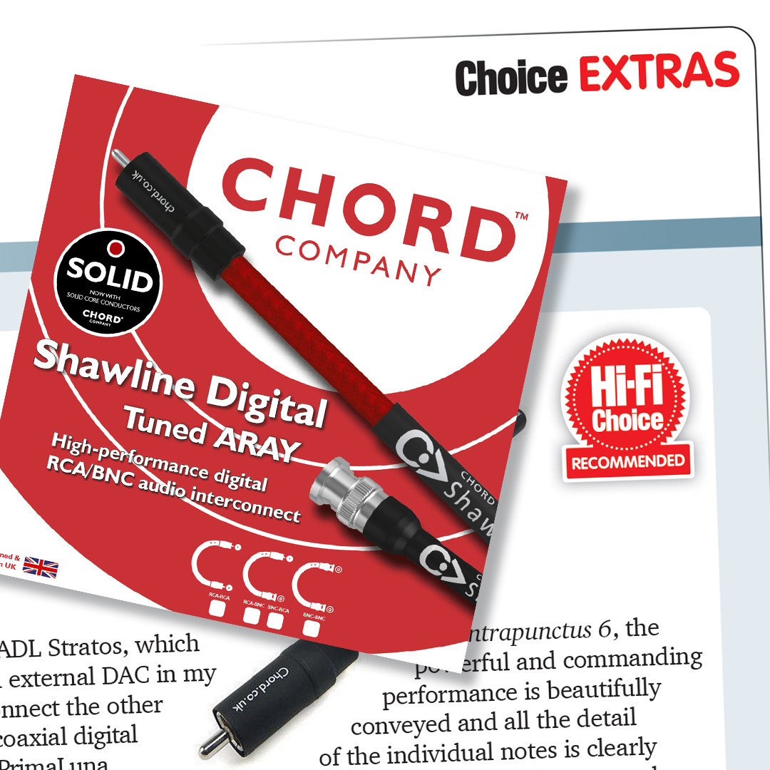 Reviewed in March, 2026 ‘Gordon Giltrap’s guitar playing on his Airwaves CD demonstrates a great musicality with the Shawline cable. On his performance of Heroes, there is a great sense of spaciousness of the soundstage together with an excellent bass response. In summary, the Shawline Digital Tuned ARAY is beautifully made and great value for money. ‘ Hi-Fi Choice Chord Company Shawline Digital Tuned ARAY cable reviewed in Hi-Fi Choice magazine March 2026. Shawline Digital employs our unique Tuned ARAY technology in identically shielded (signal and return), solid-core conductors. Hand built in the UK and fitted with ChorAlloy® plated RCA and/or BNC connectors. Available in 0.5m and 1m standard lengths, with custom lengths made to order. Chord Company Shawline cables place refinement and sophistication at centre stage. A wide variety of analogue and digital connections are available alongside the latest XLPE insulated speaker cable. The range also boasts a dedicated tone arm cable and a power cable with multiple connector options. Our unique ARAY geometry is applied wherever possible along with increasingly complex layers of shielding. Read/download the full review here
