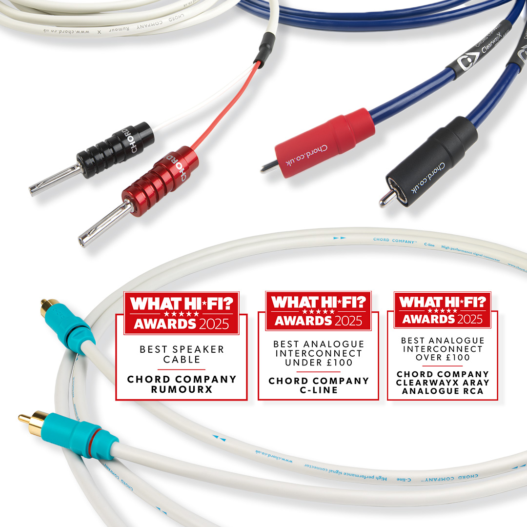 What Hi-Fi? Award Winners 2025 – Chord Company RumourX speaker cable, ClearwayX ARAY and C-line analogue interconnects Posted on 15th November 2025 by Paul Telling Chord Company What Hi-Fi? Award winners 2025. Best speaker cable – Chord Company RumourX Best analogue interconnect under £100 – Chord Company C-line RCA Best analogue interconnect over £100 – Chord Company ClearwayX ARAY Analogue RCA Check out the rest of this year’s winners here: https://www.whathifi.com/awards/2025 We are also celebrating 40 years of innovation and excellence in British design and manufacturing – and we are particularly grateful to the talented team at Chord Co HQ, our dedicated retailers and our global partners, who all share our passion for delivering exceptional hi-fi and AV experiences. Made by music lovers in Wiltshire (near Stonehenge), since 1985. Enjoyed by music lovers all over the world. Categories: Company News Product Reviews Tags: what hi-fi awards Share: 0 0 Previous post Next post No comments yet, why not be the first?